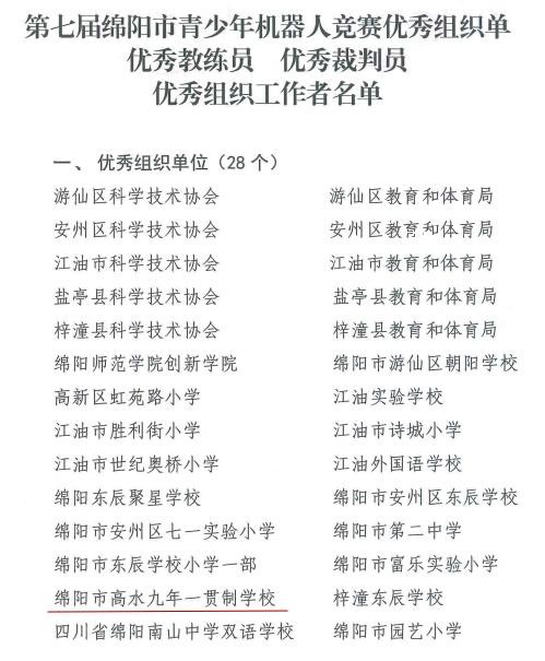 在这次绵阳市青少年机器人竞赛中我校获得了优秀组织单位的荣誉称号。