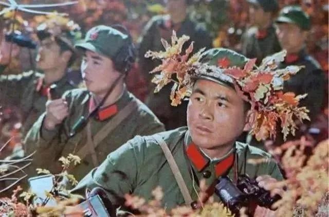 在战斗中,我军官兵都是在战场上就地取材,利用树枝或植被等进行伪装隐蔽。