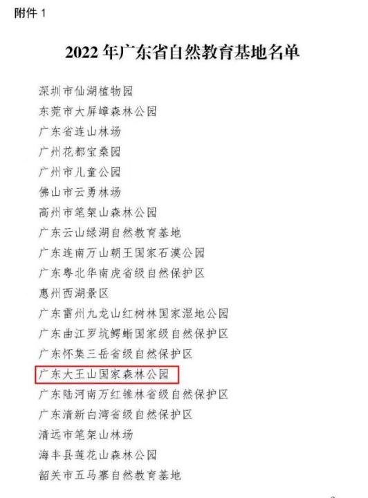 2022年广东省自然教育基地