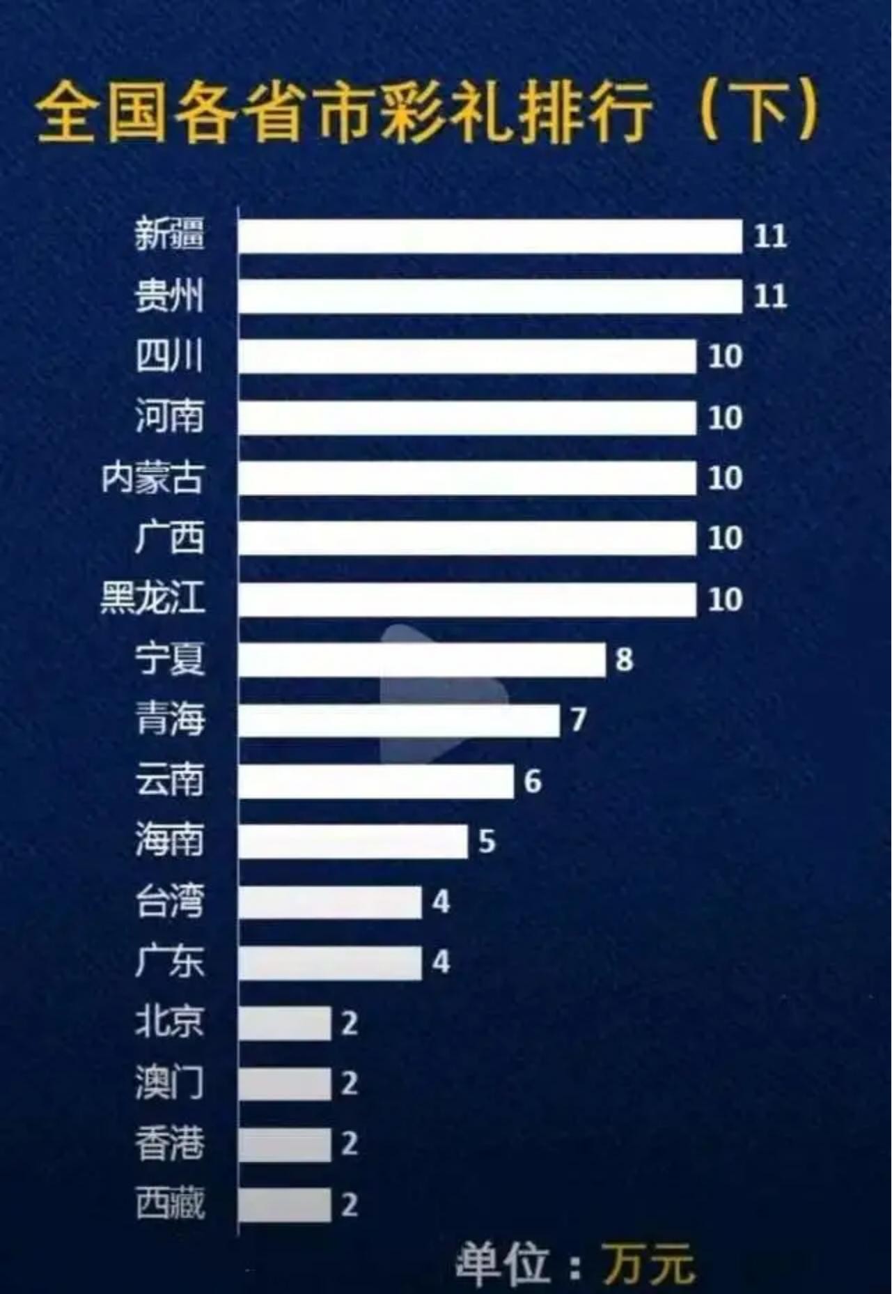 彩礼在10万以上的主要是重庆、甘肃、山西、陕西及贵州等中西部省份,也是最普遍的,可见10万左右是目前彩礼的正常行情;