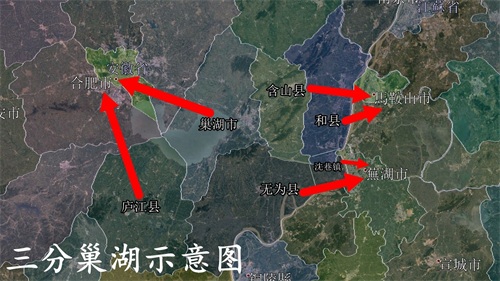 卫星地图上的地级“巢湖市”,被拆分为三部分,主体部分划入合肥