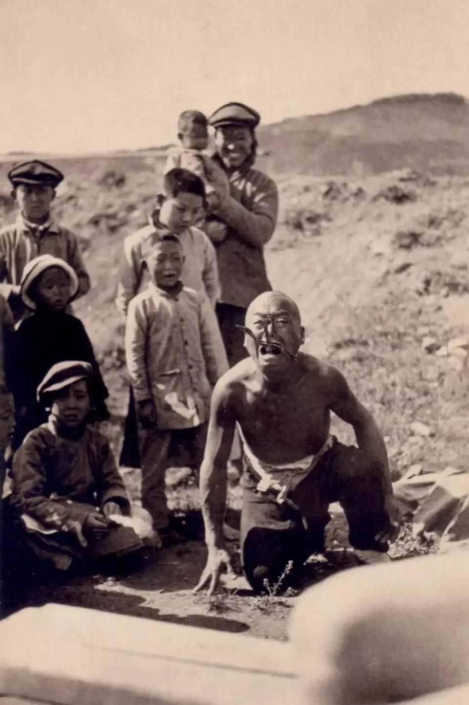 1927年在中国,几个人在表演杂技