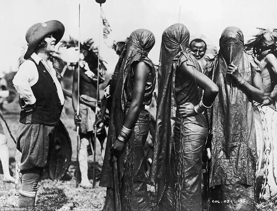 1925年,美国人类学家面对一群肯尼亚Lumbwa年轻女性,后者全部遮挡面部