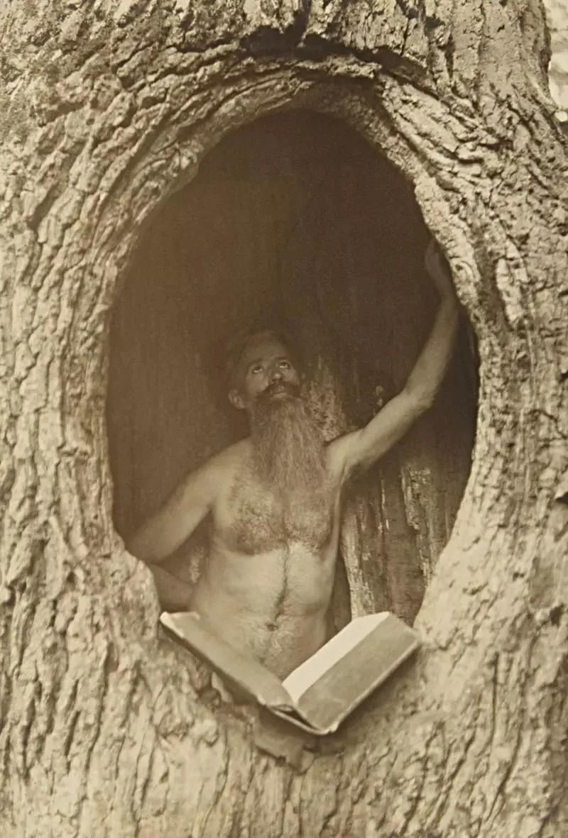 1900年,这个男子在澳大利亚的一棵树上读书