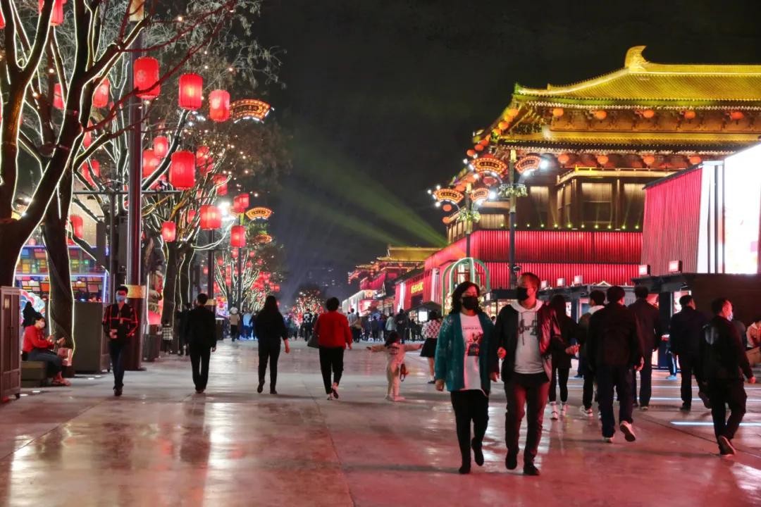 虽然有部分场馆和展演还没恢复,但已经有许多西安人前来夜游散心。