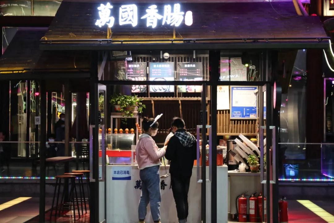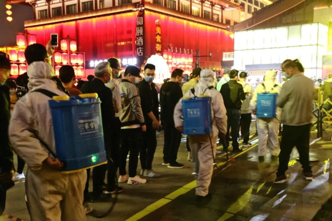 在不夜城游玩的两小时里,我们被要求出示了两次绿码,并进行了一次测温和一次消毒。