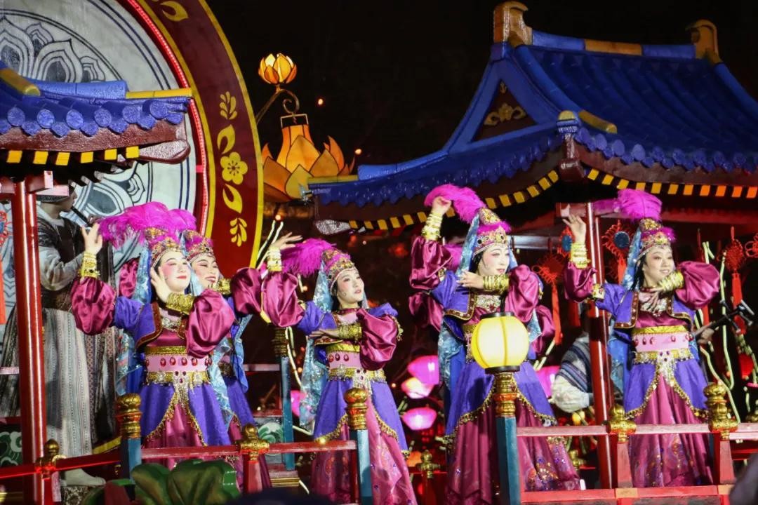 仙女姐姐们身形婀娜、犹抱琵琶,在灯火之中显得更加夺目。这场比不倒翁更加精美费心的行为艺术,绝对值得打卡围观。