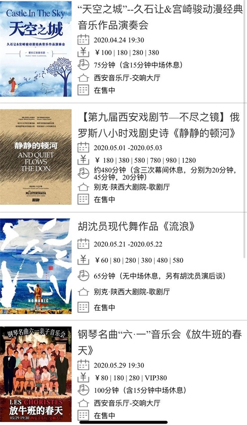 西安音乐厅最早的演出从4月24日开演,目前已经开启预售。