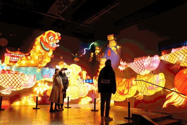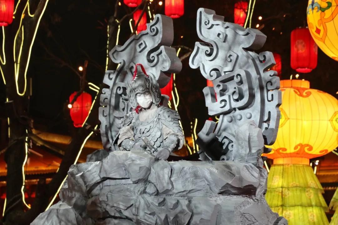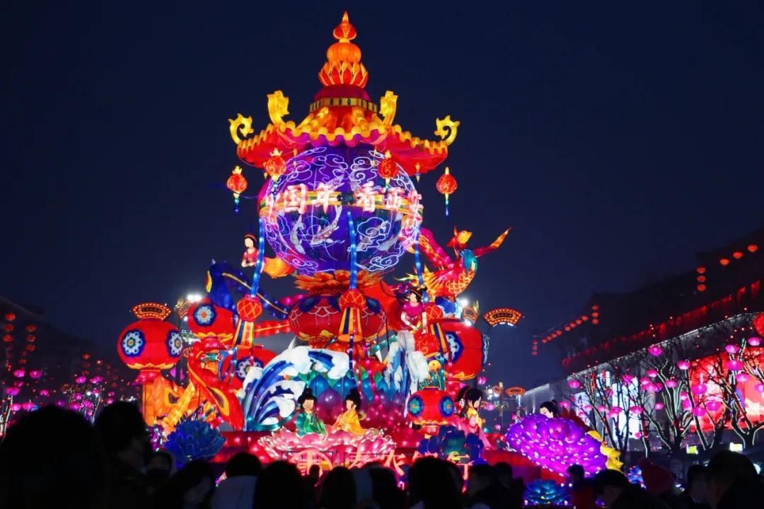 牡丹花海、巨兽门神,几处大灯雕在长街之中格外显眼。