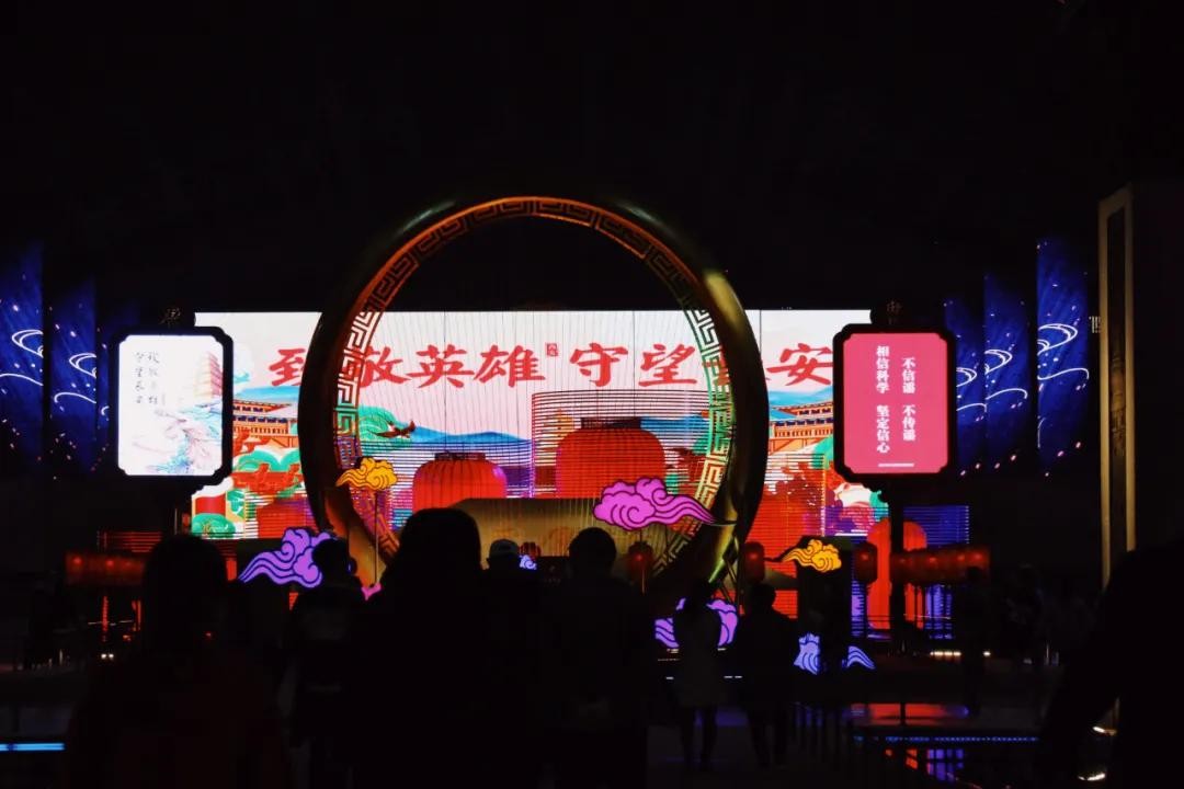 如果说不夜城最醒目的巨型天灯,从前带给人的是视觉震撼,那打上“致敬英雄守望长安”字样,就又多了一份温暖和动容。