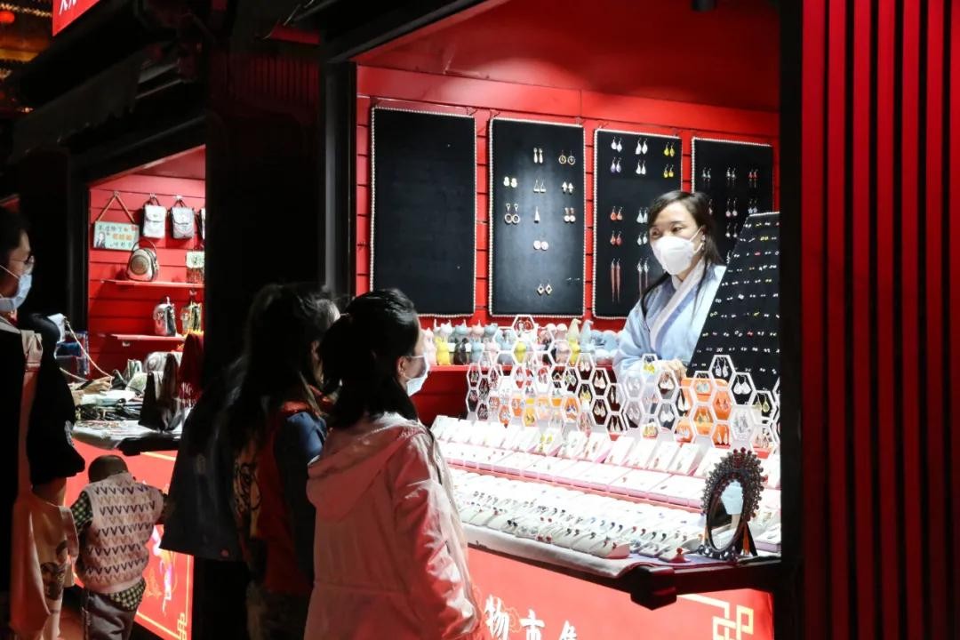 不过步行街沿途的商铺基本都已开放,文创、美食应有尽有,每个小摊位都别有洞天。